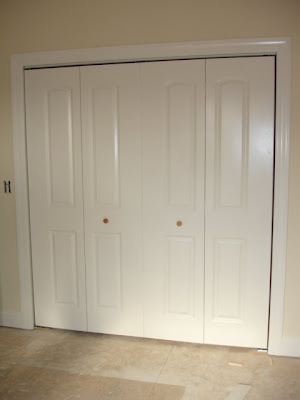All of the trim is up, and all the walls and trim have been painted. The red wall you see below is in the office, which has a Titans theme. This is just the base coat. More dirt has also been added in front of the house, which you can tell from the change in the slope in front of the driveway. Our appliances also got delivered today. The refrigerator is hooked up and working. The electrician and plumber will be in next week to finish hooking up the rest of the appliances and to finish the rest of the electrical and plumbing. The countertops are also going in next week. I don't know if I mentioned this in the last post or not, but we are tentatively about 4 weeks away from moving in!